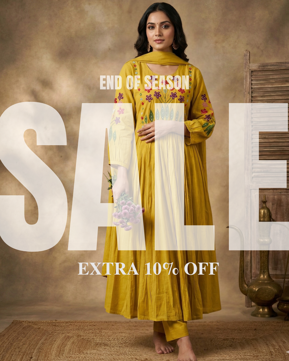 -68% Sold outRegular price Rs. 1,299.00Regular priceUnit price / perRs. 3,999.00Sale price Rs. 1,299.00Explore our exquisite collection of Kurti Sets, Co-ord Sets, and A-Line Dresses, crafted from premium cotton for unmatched comfort and breathability. Designed with elegance and versatility, these outfits are perfect for casual outings, festive celebrations, and special occasions. Our Kurti Sets come with coordinated bottoms, while the Co-ord Sets offer a chic, harmonious style. The timeless A-Line Dresses, available in various lengths and patterns, flatter every body type. Handcrafted with precision, each piece promises durability, a flawless fit, and enduring quality. Easy to maintain, these garments retain their color, texture, and shape even after repeated washes. Upgrade your wardrobe with our stylish, comfortable, and high-quality ensembles.